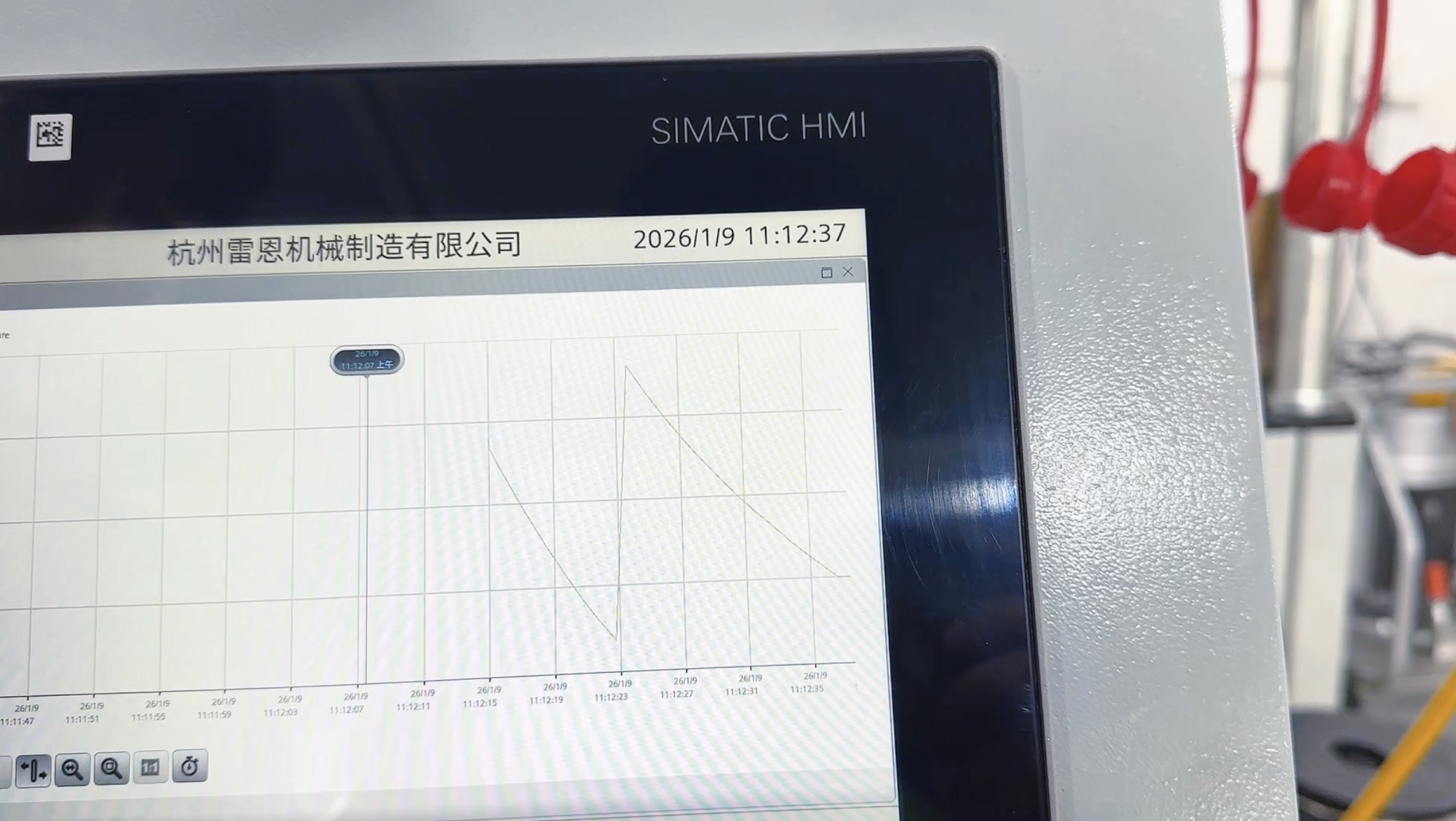 壓力曲線,壓力數值實時(shí)顯示在觸(chù)摸屏上。