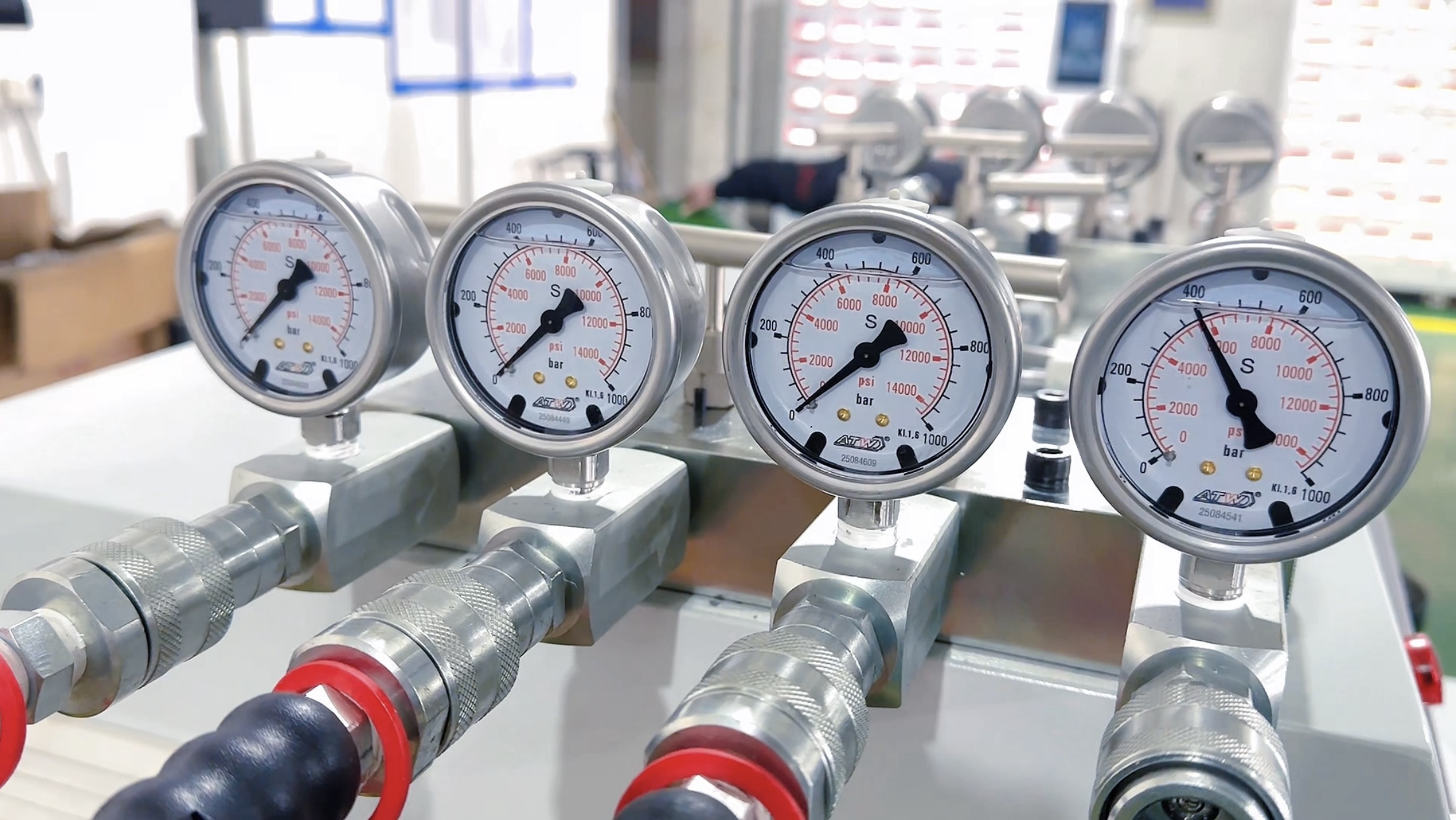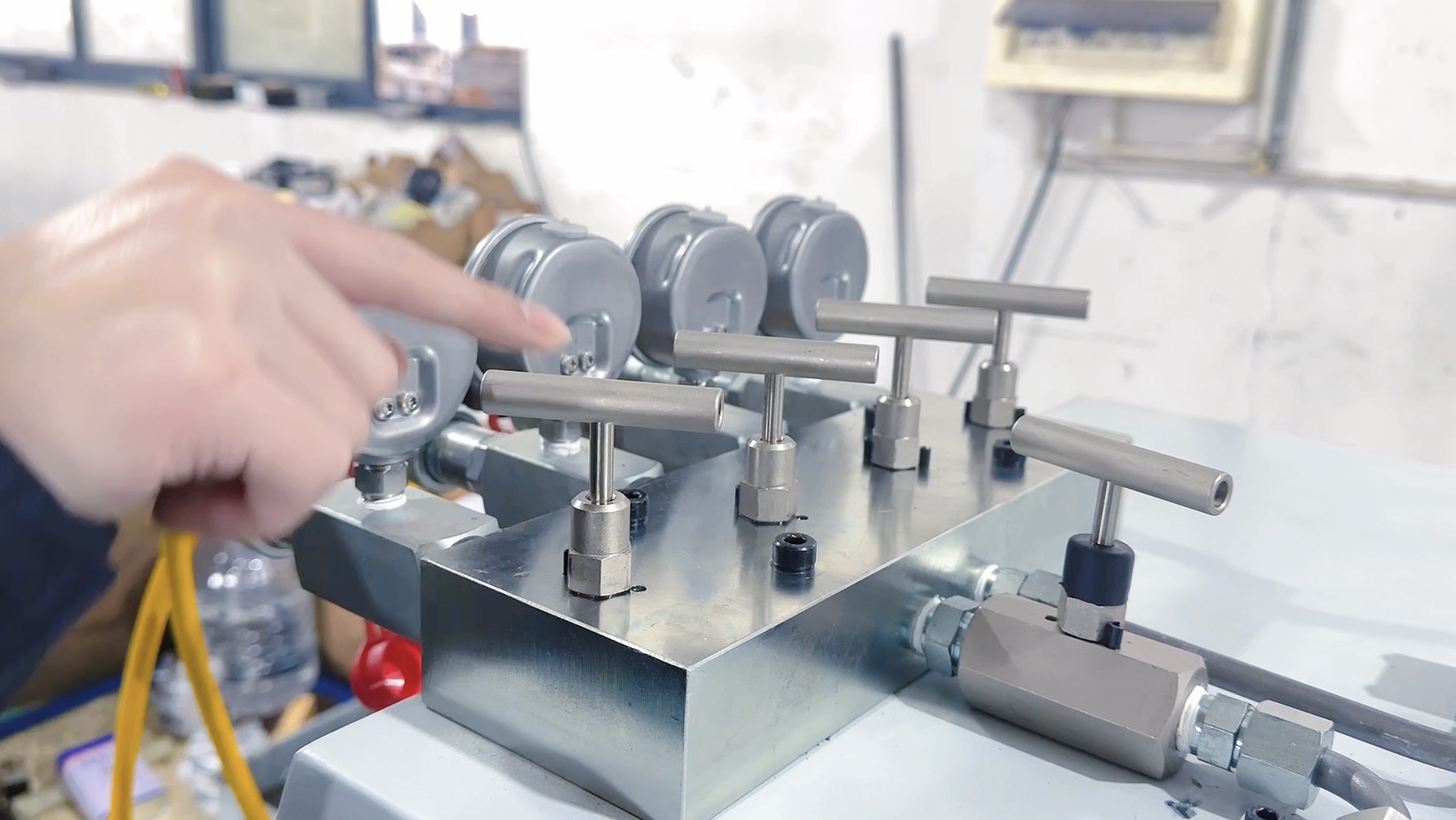 控制櫃、觸(chù)摸屏和分配器處都可讀取壓力,分配器各出口管路上分别配備(bèi)手動截止閥和壓力表。