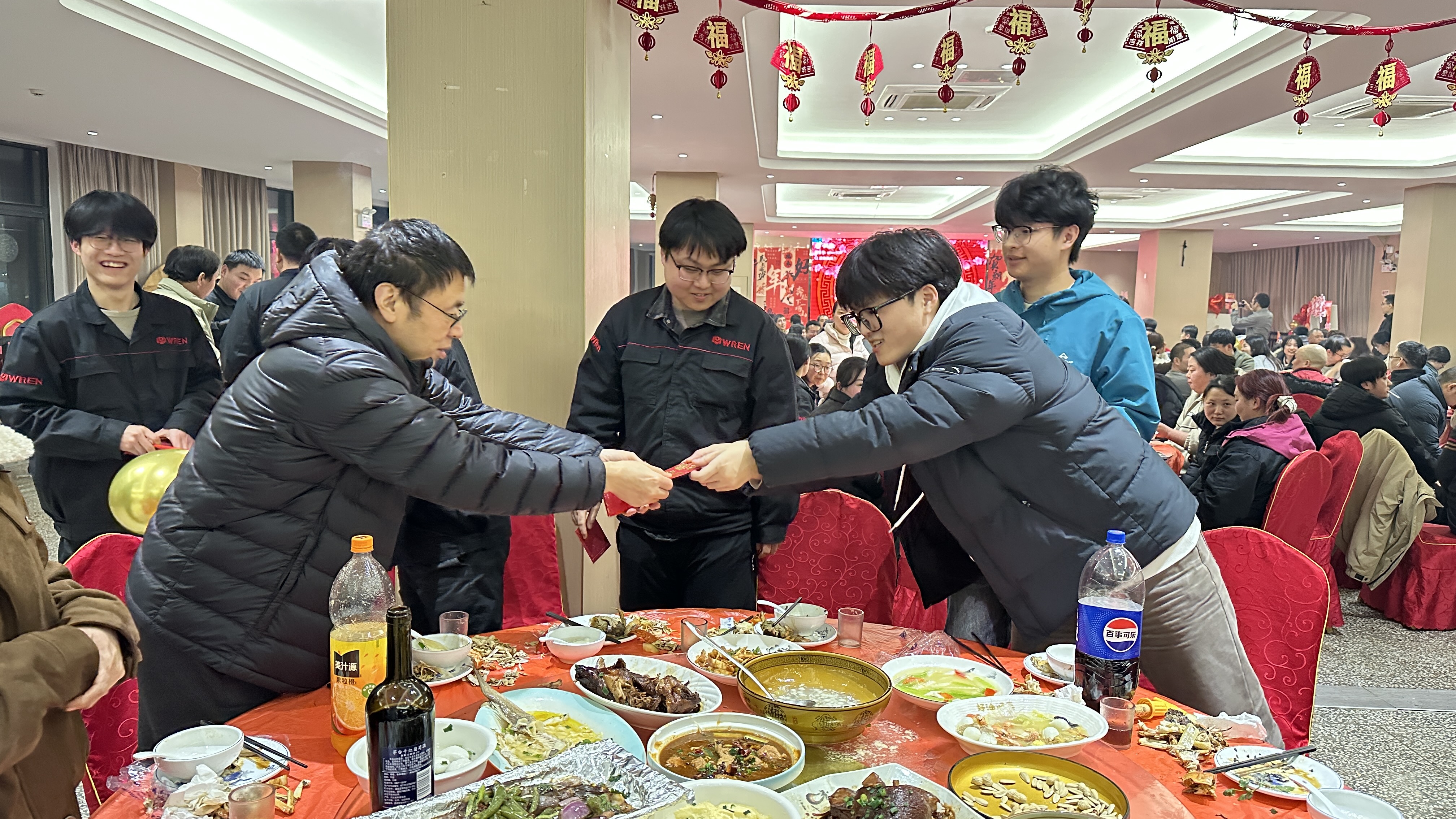 敬酒環節溫情滿滿,領導們逐桌與家人碰杯緻謝,送上馬年祝福,家人們踴躍回敬,美酒與問候交織,凝聚同心同行的力量。随後的抽選紅包環節點燃全場,每一份紅包都承載著(zhe)公司的厚愛(ài),歡呼聲中滿是喜悅。